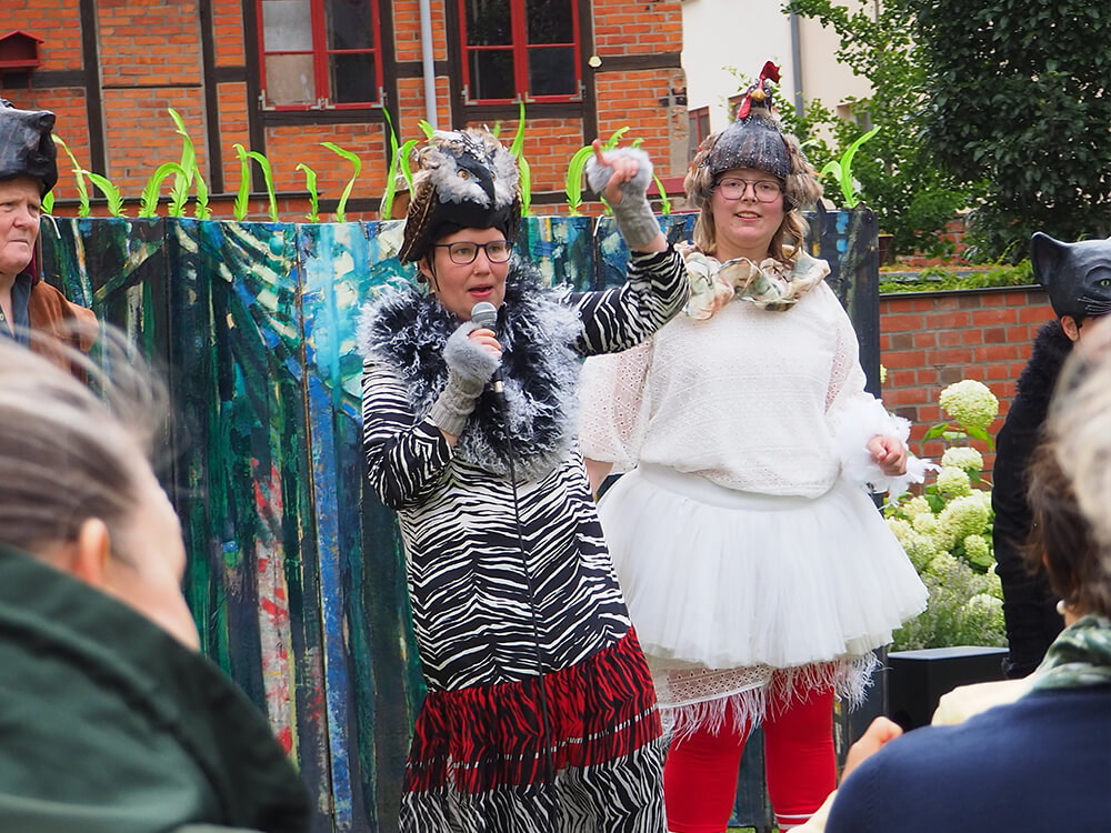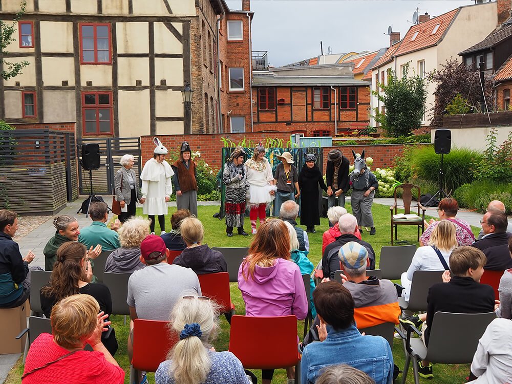 In diesem Jahr brachte die Gruppe zum ersten Mal das selbst produzierte Theaterstück "Die Wismarer Stadtmusikanten" auf die Bühne. Es handelt von 6 Tieren, die ihr Zuhause verloren haben und sich mit der Hilfe der Musik ein neues Leben aufbauen. Ihre Premiere feierte die Aufführung am 14.07.2024 im Rahmen des Theaterfestivals in der St.-Georgen-Kirche in Wismar. Am 04.08.2024 spielten die "Charakterköpfe" beim boulevART-Festival im Innenhof des Schabbellhauses. Als Nächstes zeigen sie am 15.08.2024 um 16 Uhr auf der Hauptbühne des Schwedenfestes ihr Stück.