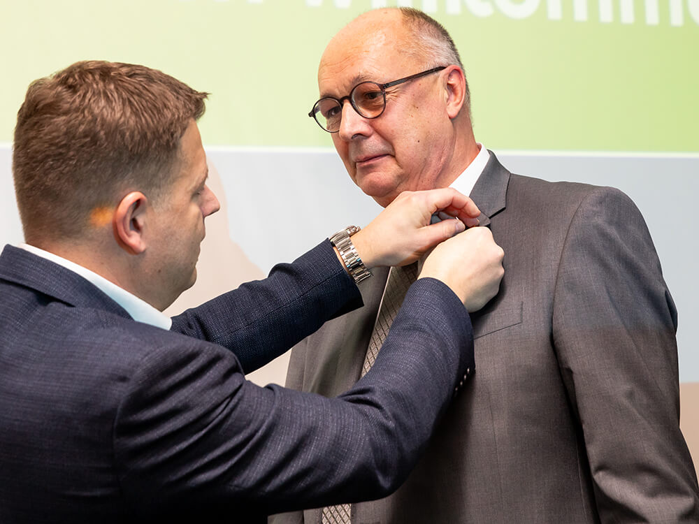 Am 15.11.2024 war es soweit: Langjährige Wegbegleiter*innen, Geschäftspartner*innen, Kolleg*innen und Familie kamen im TGZ Wismar zusammen, um das Lebenswerk von Herrn Bunge zu würdigen. Wertschätzende Worte und viel Anerkennung strömten zum Geschäftsführer der ersten Stunde. Nach der Begrüßung durch Herrn Werfel schauten in ihrer Rede Fred Wieschmann (Gesellschafter Lebenshilfe Wismar e. V. ), Marten Brockmann (Geschäftsführer Landesverband der Lebenshilfe MV) und Stephan Hüppler (Vielfalter gGmbH und Vertreter der Bundesvereinigung der Lebenshilfe) auf das Wirken von Herrn Bunge zurück. Eine besondere Überraschung war die Auszeichnung mit der Ehrennadel in Gold der Bundesvereinigung der Lebenshilfe e. V.
