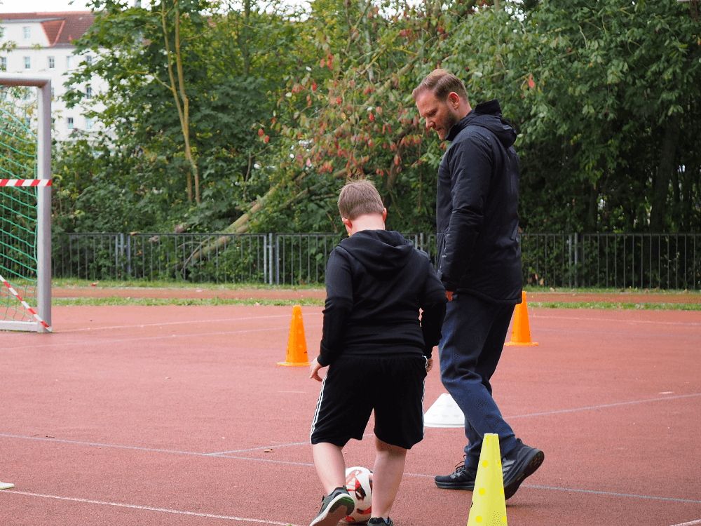 An der Astrid-Lindgren-Schule war der 26.09.2025 ein ganz besonderer Tag: Matthias Fink, Jugendkoordinator und Cheftrainier unseres Kooperationspartners FC Anker Wismar, machte mit einigen Schüler*innen das DFB-Fußball-Abzeichen. Die Kinder und Jugendlichen zeigten bei verschiedenen Übungen, wie gut sie mit dem Ball umgehen können. Sie schossen, dribbelten und passten durch verschiedene Hindernisse. Matthias Fink begleitete den Fußball-Nachwuchs professionell und gab hilfreiche Tipps. Am Ende erhielten die Teilnehmenden ein Abzeichen in Gold, Silber oder Bronze - je nachdem, wie viele Punkte sie erreicht haben. Die Freude und der Stolz waren bei den Schüler*innen riesig!
