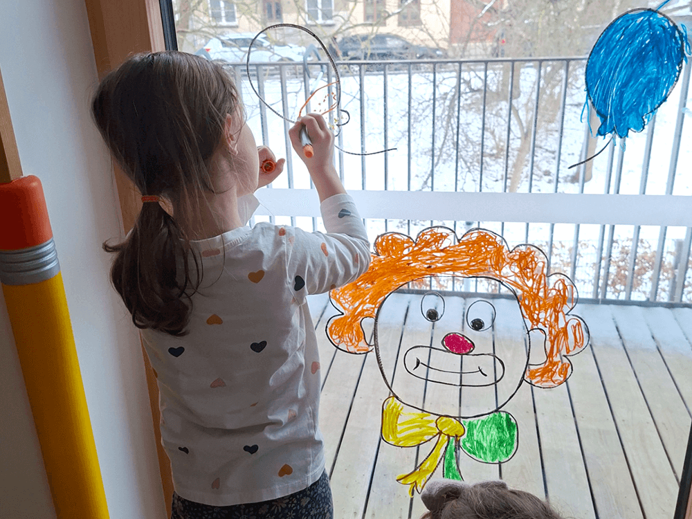 Bei den Vorbereitungen auf das Fest waren die Kinder natürlich direkt beteiligt: Sie bemalten die Fenster oder fertigen die Faschingsgirlanden für die gesamte Kita. Die Eltern bereiten ein reichhaltiges Buffett für die Kinder. Sie mischten an der Saftbar leckere Getränke zusammen und unterstützen an den einzelnen Ständen, die das engagierte Kita-Team vorbereitet hatte. Großeltern bedienten an der Eisbar alle Leckermäulchen. Sogar ältere Geschwisterkinder waren zum Mithelfen gekommen.