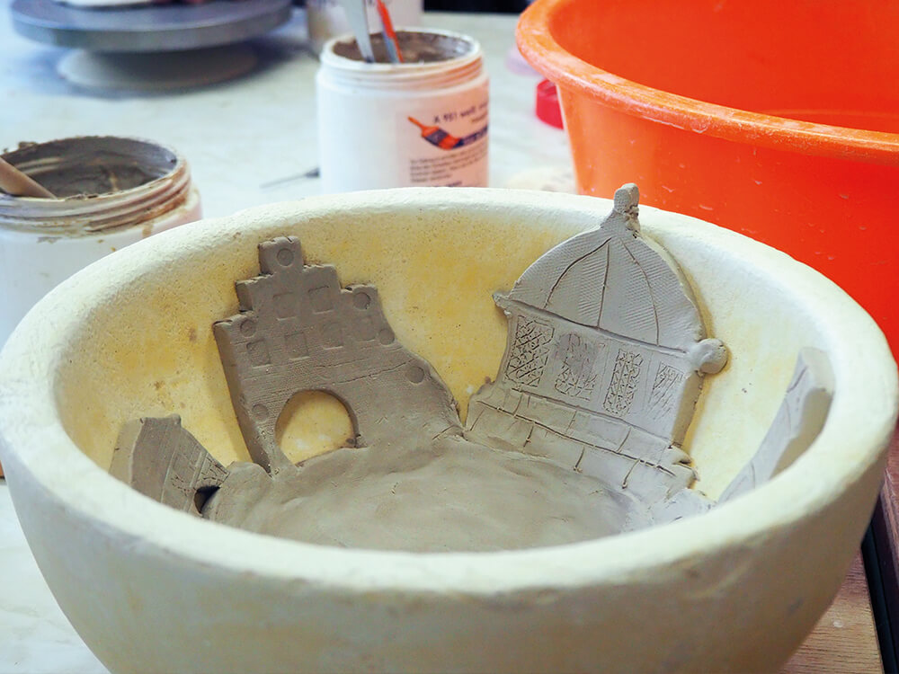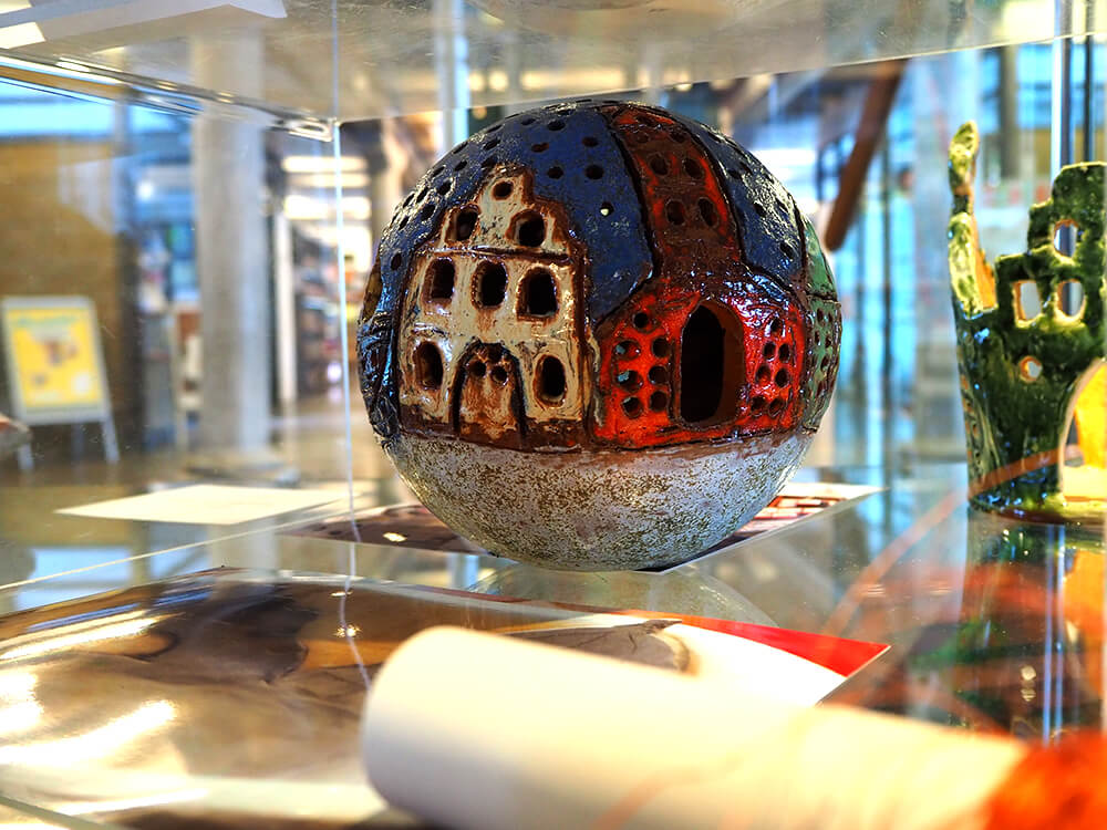 Beim arbeitsbegleitenden Angebot Töpfern war 2023 das Projekt "Wismar – unsere schöne Stadt" entstanden. Die Keramiken, die die Teilnehmenden geschaffen haben, wurden bis zum 06.01.2024 in der Stadtbibliothek ausgestellt.